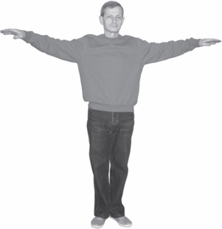 Руки (ладонями вниз) через стороны поднимаются до тех пор, пока не станут параллельны полу. При этом «Ци пронизывает до кончиков пальцев». Возникает ощущение «расправленности» поясницы и позвоночника. Если удастся достичь состояния покоя Цзин и Шэнь, может появиться ощущение, что тело висит в пустоте.