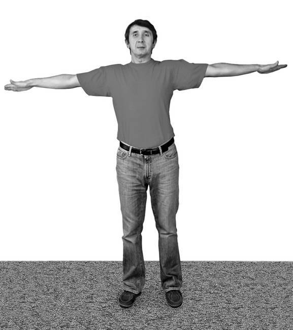 Исходное положение: то же, но руки не разведены в стороны, а свободно опущены по бокам вдоль туловища.