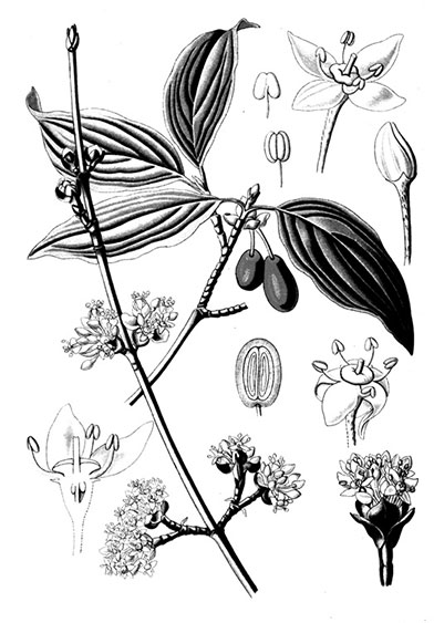Волчье лыко. Не следует есть овальные красные ягоды волчьего лыка — Daphne mezereum L. (семейство Thymelaeaceae) — небольшого кустарника, растущего по лесистым склонам в европейской части России, на Кавказе и в Сибири до Байкала, так как они ядовиты и даже в небольшом количестве вызывают воспаление гортани. Ядовита и кора его.