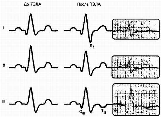 При тромбоэмболии легочной артерии (ТЭЛА) ЭКГ отражает резко изменившиеся условия внутрисердечной гемодинамики, а именно — перегрузку правых отделов сердца, проявляющуюся тремя основными электрокардиографическими вариантами: