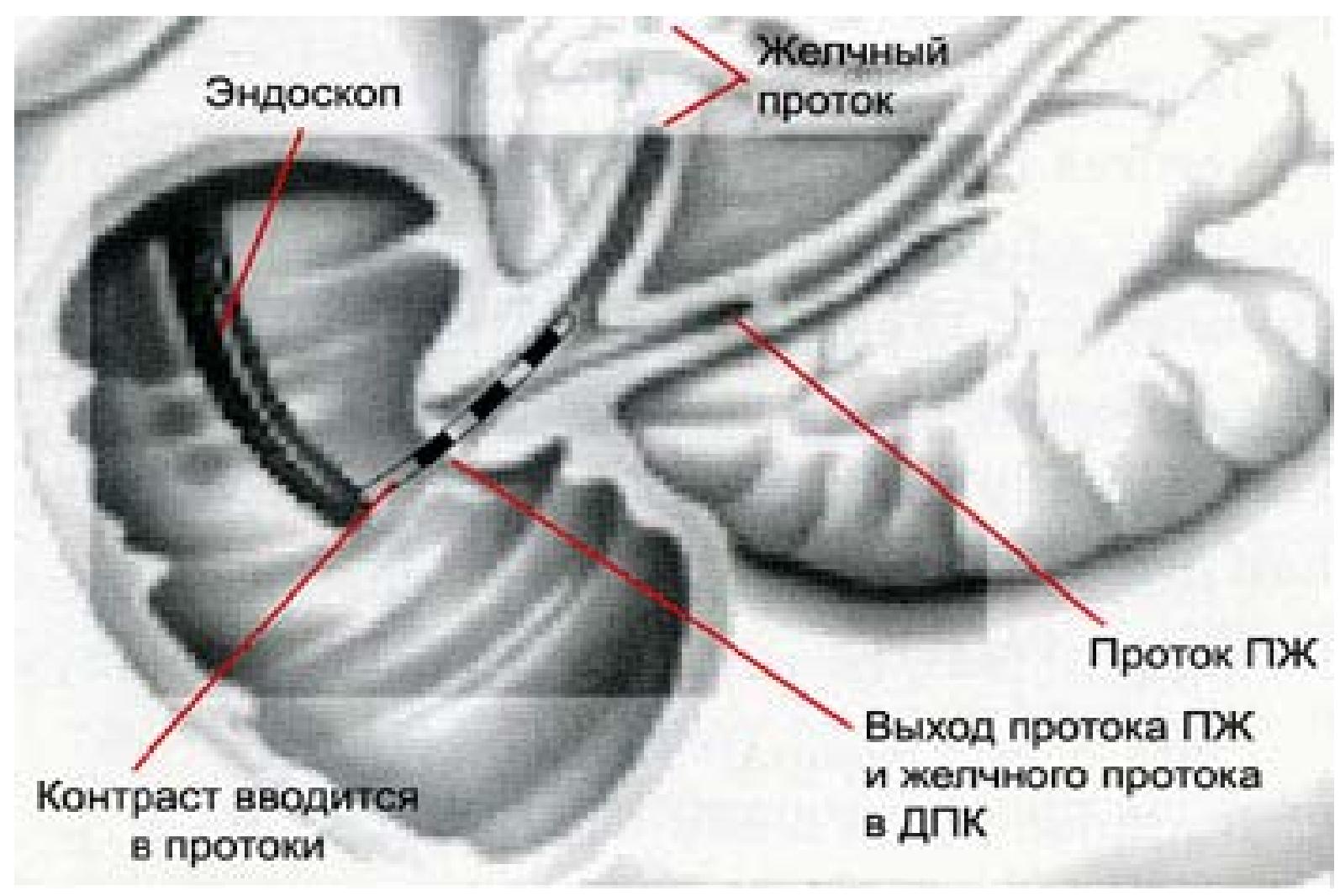 Эндоскопическая ретроградная холангиопанкреатография (ЭРХПГ). Этот метод исследования позволяет оценить состояние желчных и панкреатических протоков. Из-за возможности осложнений ЭРХПГ выполняется по строгим показаниям опытным специалистом.
