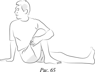 Сядьте на пол и вытяните ноги перед собой. Согните левую ногу в колене так, чтобы левая стопа находилась на полу рядом с правым бедром. Обнимите правой рукой левое колено и поверните корпус влево. Удерживайте это положение… Дыхание должно быть свободным. На каждом выдохе пытайтесь еще хоть на немного больше повернуться влево.
