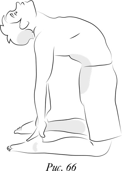 Из позы скручивания перейдите в положение стоя на коленях. Наклонитесь назад и обхватите лодыжки обеими руками. Откиньте голову и прогибайтесь. Таким образом вы тянете передние мышцы бедер. Дышите свободно. Через десять секунд медленно отпустите руки и выпрямите спину. По-прежнему оставайтесь на коленях. Закройте глаза и сосредоточьтесь на позвоночнике. Представьте живую энергию, которая течет от его основания к вашей голове…