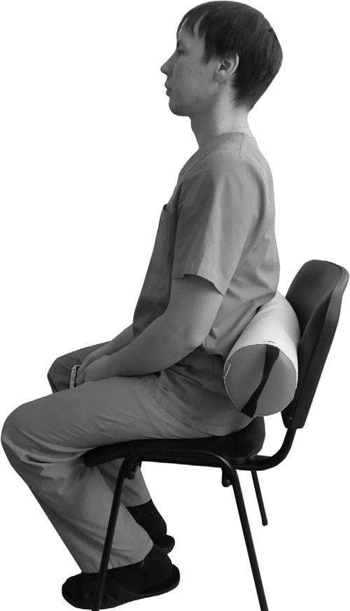 Вот более легкий способ. Облокачивайтесь на спинку кресла и, если у кресла нет поясничной подпоры, используйте валик из подушки или чего-то подобного. Он будет поддерживать вашу поясницу в правильном положении и не будет давать ей выгибаться назад.