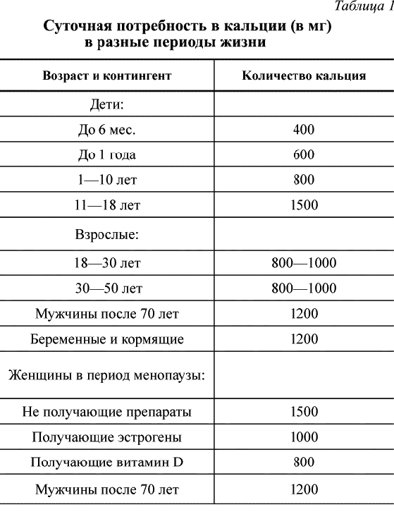 В течение всей жизни потребность в кальции может варьироваться. Но несомненно, что кальций нужен каждому и всегда (См. табл. 1).