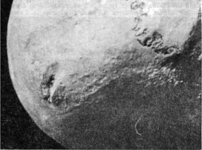 Заслуживает внимания исход ранения у другого сармата. Ранение было нанесено по левой теменной кости. Клиновидно суживающийся в глубину дефект костного вещества достигал внутренней компактной пластинки. Все же рана зажила (рис. 96). Губчатое вещество (диплоэ) покрыто новообразованной замыкающей пластинкой. Раненому была оказана длительная и квалифицированная помощь. Она предохранила раневую поверхность и мозговые оболочки от инфицирования и обеспечила заживление (с дефектом костной ткани).