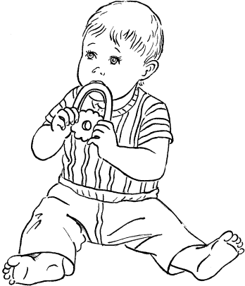 Рис. 237. Когда режутся зубы, малыш все тянет в рот