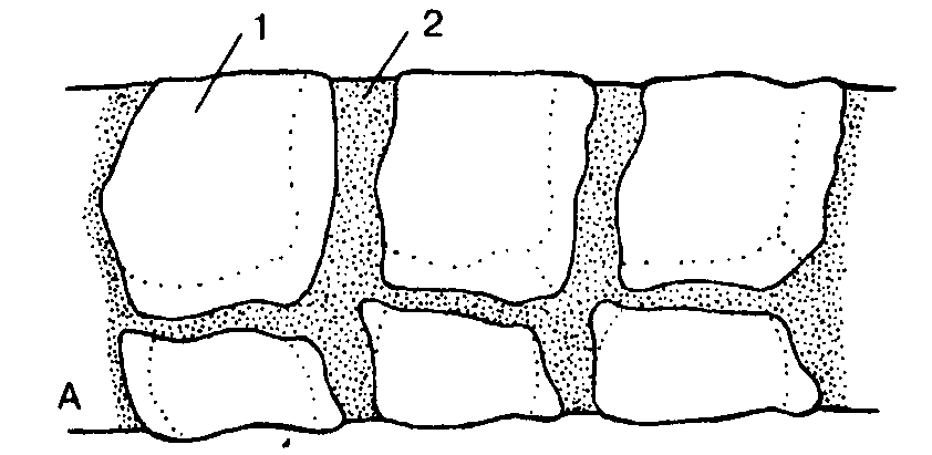 Крепление мышц к наружному скелету: 1 – выросты склерита, к которым прикрепляются мышцы; 2 – мышцы