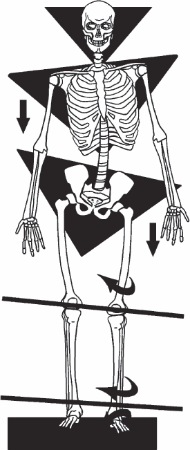 Стопа при шаге должна разгибаться так, чтобы давление на пяточную кость приходилось под таким углом, что если продолжить линию через пяточную кость, то она будет находиться на одной оси с большеберцовой костью.