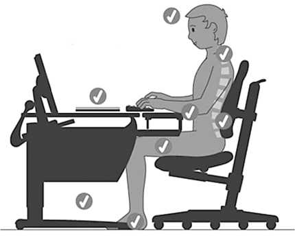 Высоту сиденья надо правильно отрегулировать относительно стола. Если вы при этом не достаете ногами до пола, придумайте какую-нибудь подставку под ноги, иначе, если ноги будут болтаться, это приведет к перенапряжению спины. Постарайтесь также избавиться от привычки цепляться ногами за ножки стульев. Это нарушает кровообращение. Очень вредно закидывать ногу на ногу. Это не только мешает правильному току крови, но и просто немыслимо изгибает все тело.