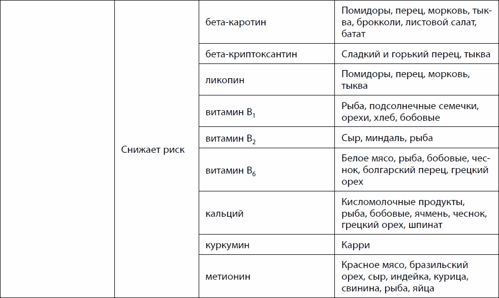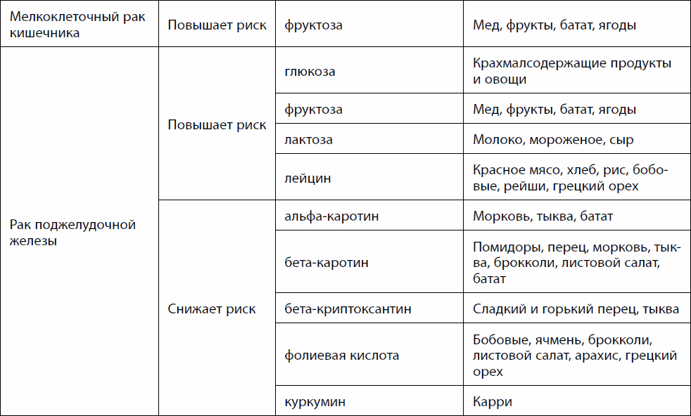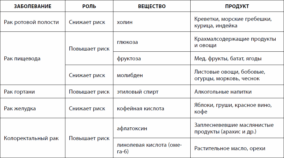 Таблица 19. Питание и рак органов пищеварительной системы