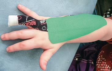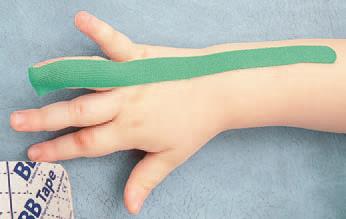 Пациентка Ш., возраст 3 года (рис. 64, а-е). Диагноз: последствия резаной раны четвертого пальца правой кисти с повреждением сухожилия глубокого сгибателя пальцев. Данные осмотра: движений в пальце нет. Чувствительность сохранена по-разному, местами. Явления сгибательной контрактуры в дистальном межфаланговом суставе.