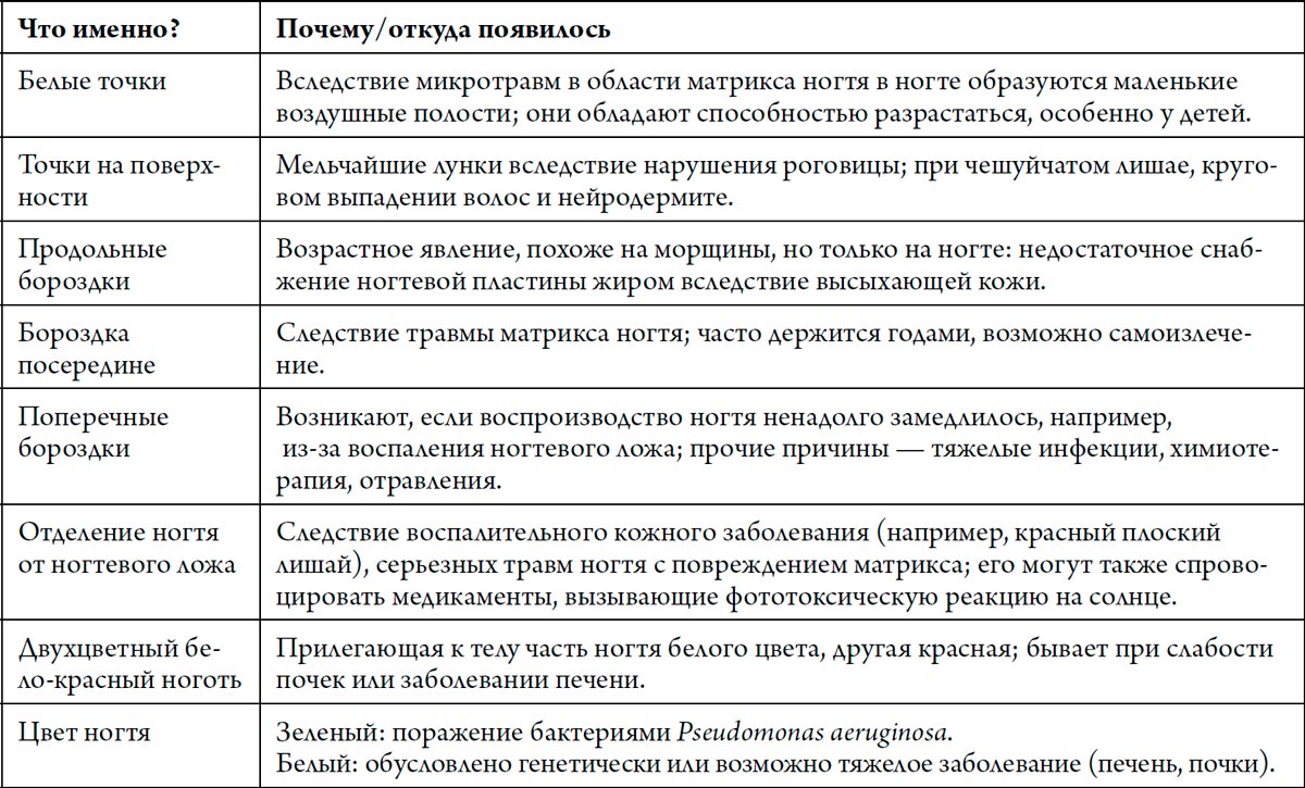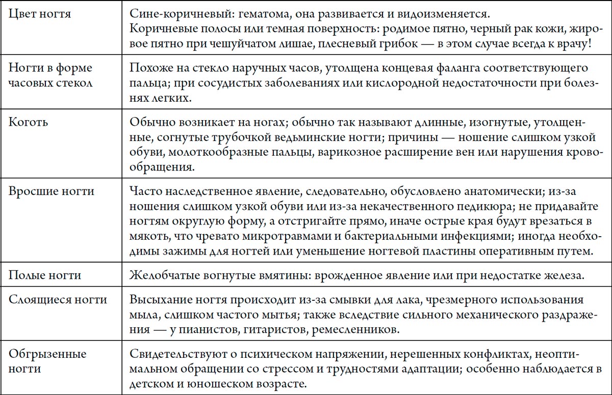 Краткая информация о часто встречающихся видоизменениях ногтей