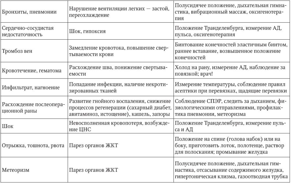 Возможные осложнения после операции со стороны органов и систем разделяются на ранние и поздние (реабилитационная стадия). В табл. 1 рассмотрены симптомы, причины послеоперационных осложнений и меры по их профилактике.