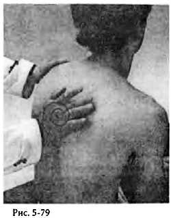 Затем, делая ребром ладони круговые движения вдоль мышц плеча, пройдитесь к плечевым суставам (рис. 5-76).