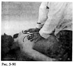 Затем основанием ладоней (рис. 5-90) надавите на две продольные мышцы спины. Выполняя круговые движения, двигайтесь вниз от головы в нижнюю часть спины.