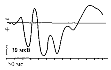 Рис. 52. Зрительный вызванный потенциал. Начало ответа совпадает с моментом предъявления светового стимула