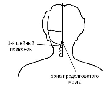 5. Затем обеими руками разминаем область седьмого шейного позвонка, относящуюся к первичным застоям (рис. 3, б). Когда в этой области образуется «холка», энергия срединного меридиана практически постоянно пребывает в критическом застое, ее надо проталкивать. Энергично мнем холку двумя руками одновременно, затем простукиваем надплечье (место, где носят погоны).