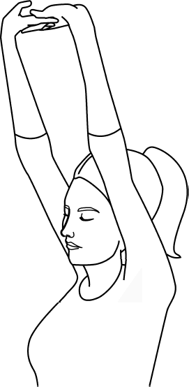 1. Поднимите руки вверх как можно ближе к ушам. Практически зажмите ими голову. Вы можете соединить кисти в замок или держать свободно по вашему усмотрению. Голову опустите к подбородку, втяните ее глубоко в плечи (рис. 119). Тянитесь руками к потолку. Через 30 секунд опустите руки.