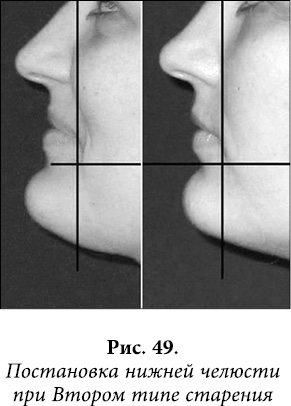 Применительно, скажем, ко Второму типу старения лица, в этой матрице «прописано» вытягивание нижней челюсти чьей-то невидимой рукой во внешнее пространство.