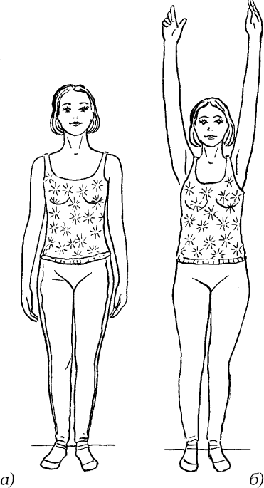 Исходное положение – ноги на ширине плеч, руки опущены вдоль туловища (рис. 490 а).