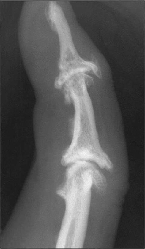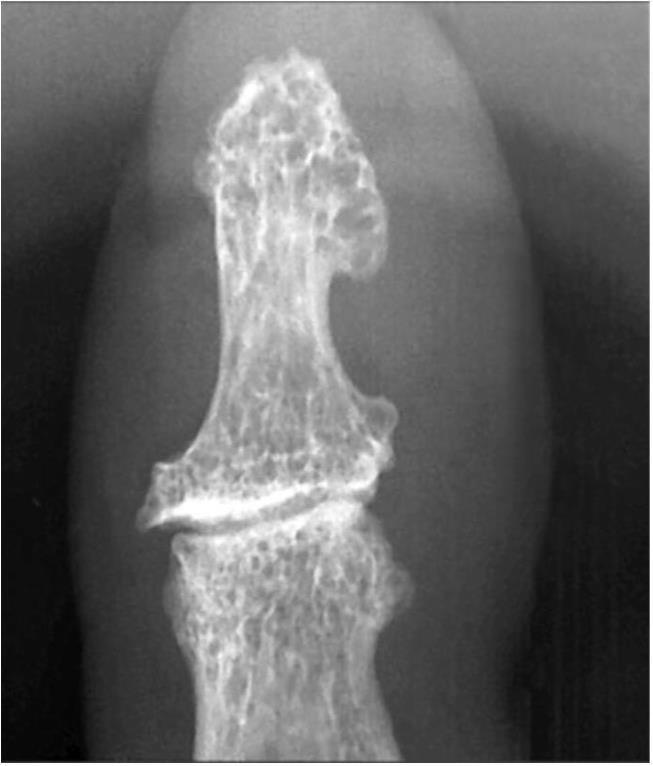Рис. 9. Рентгенограмма дистального межфалангового сустава IV пальца правой кисти больного с IV стадией первичного остеоартроза