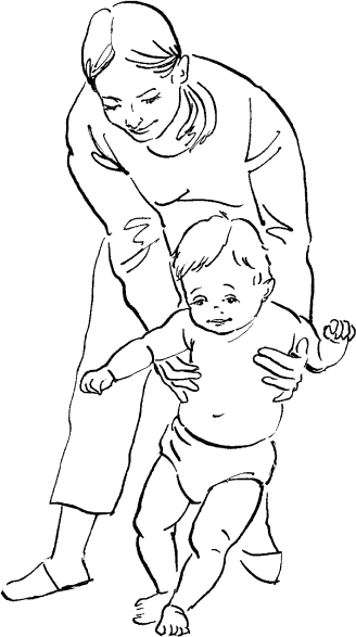 Вы можете наблюдать, как тренирует равновесие ваш малыш. Он встает на ноги, держась за какую-нибудь опору (стенку, диван, кровать и т. д.), потом отталкивается от нее и стоит, балансируя, несколько секунд. Чаще всего он через несколько секунд падает, но потом снова поднимается и повторяет это действие еще и еще раз.