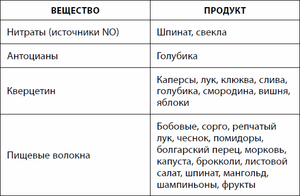 Одной из причин гипоксии тканей с возрастом являются нарушения в сосудах – изменение их проницаемости, тонуса, появление атеросклеротических бляшек. Свою негативную роль играют избыточное употребление красного мяса и сливочного масла. Несмотря на свою плохую репутацию, сосудам нужны нитраты, из которых образуется гормон оксид азота и ряд других веществ (табл. 31).