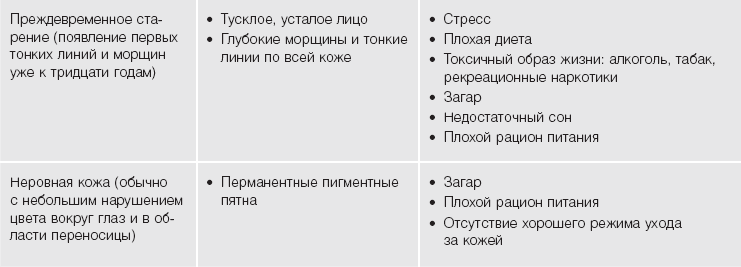 Есть, конечно, множество других проблем с кожей, которые мы можем унаследовать от родителей: псориаз, экзема, розацеа, акне и все другие воспалительные заболевания кожи, которые могут не только вызываться факторами окружающей среды или образом жизни, но и передаваться из поколения в поколение. Генетические проблемы с кожей более серьезны и встречаются все чаще с каждым новым поколением. Если вы страдаете от каких-либо наследственных заболеваний кожи, внесите их в таблицу ниже. Эта информация будет полезна в следующих главах, когда мы будем рассматривать заболевания в подробностях.