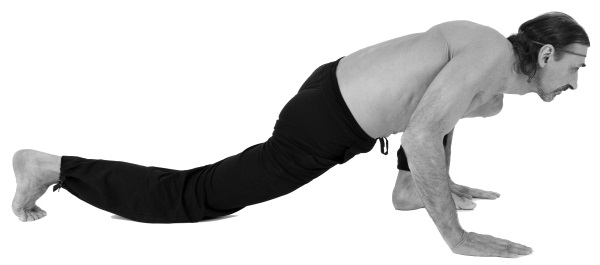 Исходное положение — сидя на корточках, руки слегка согнуты в локтях, ладони параллельны друг другу и лежат по бокам от ступней, упираясь в пол.