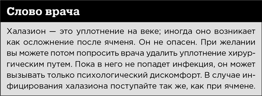 Ни в коем случае не выдавливайте ячмень и не прокалывайте его иглой: так вы лишь занесете инфекцию и усугубите свое состояние{115}.
