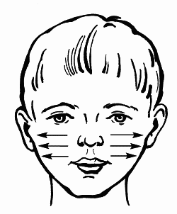 Разминание и растирание щек проводится обеими руками в направлении от носа к щекам в течение 6–8 секунд, 2 раза в день (рисунок № 41).