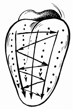Описание: проводится обкалывание языка от корня к кончику и по боковым краям языка.