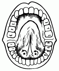 Описание: проводится точечный массаж в углублениях под языком, в двух точках одновременно.