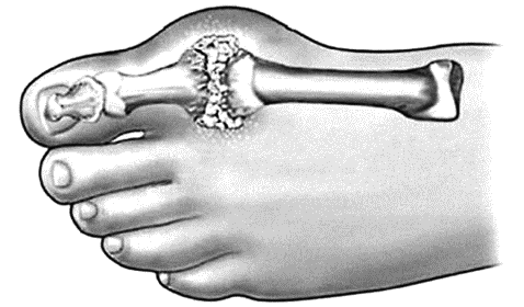 Острый подагрический артрит начинается с поражения одного сустава, чаще всего большого пальца стопы (рис. 2.8). К возникновению острого артрита могут привести переедание, злоупотребление алкоголем, травма, хирургическое вмешательство.
