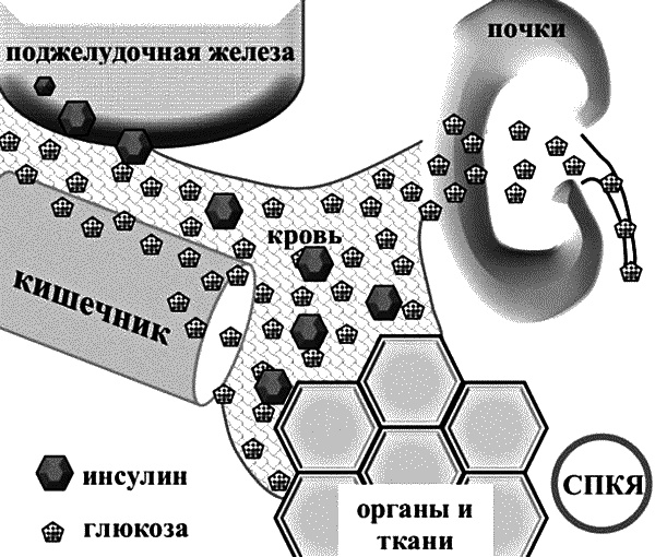 Отличительной особенностью СПКЯ является инсулинрезистентность – нарушение восприимчивости инсулина тканями (устойчивость к инсулину) аналогично тому, как это бывает при сахарном диабете II типа.