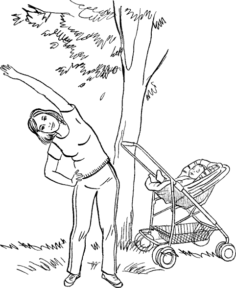 Только такая активная прогулка даст необходимую нагрузку. Также вы можете прямо в парке, свернув к ближайшему дереву, поставить рядом коляску и сделать небольшой комплекс упражнений: наклоны, выпады, легкие прыжки, разгибание спины, поднимание рук и ног. Для разнообразия и придания себе бодрости используйте технику для прослушивания музыки (плеер, телефон с наушниками).
