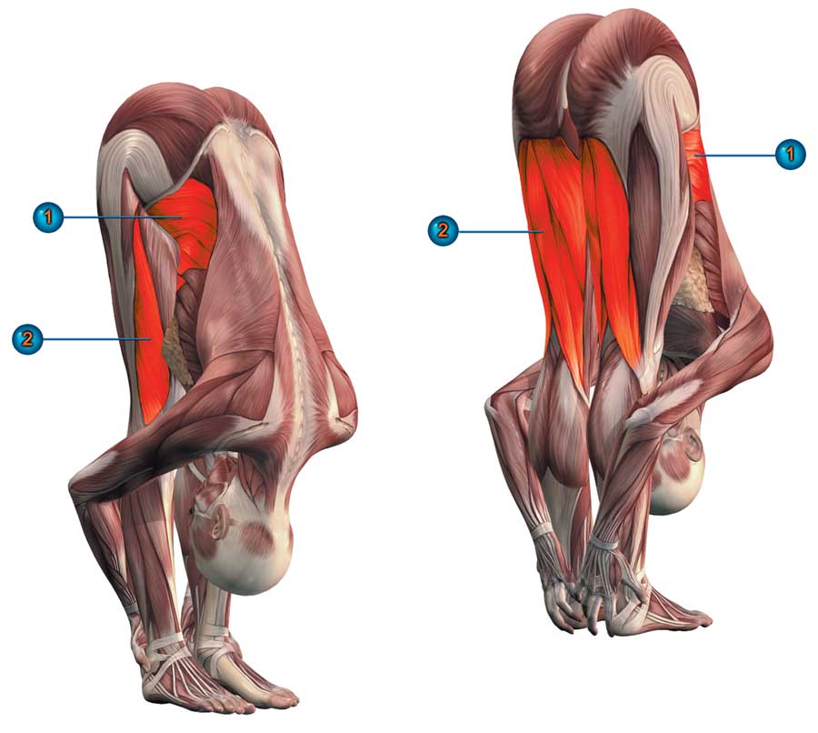 В данном случае в той или иной степени задействуются все мышцы нижних конечностей для удержания равновесия, в частности активизируются широкие мышцы бедра (разгибание колена) и задняя группа мышц бедра. Чтобы правильно выполнять асану, нужно обеспечить подвижность тазобедренных суставов, эластичность мышц и связок ног.
