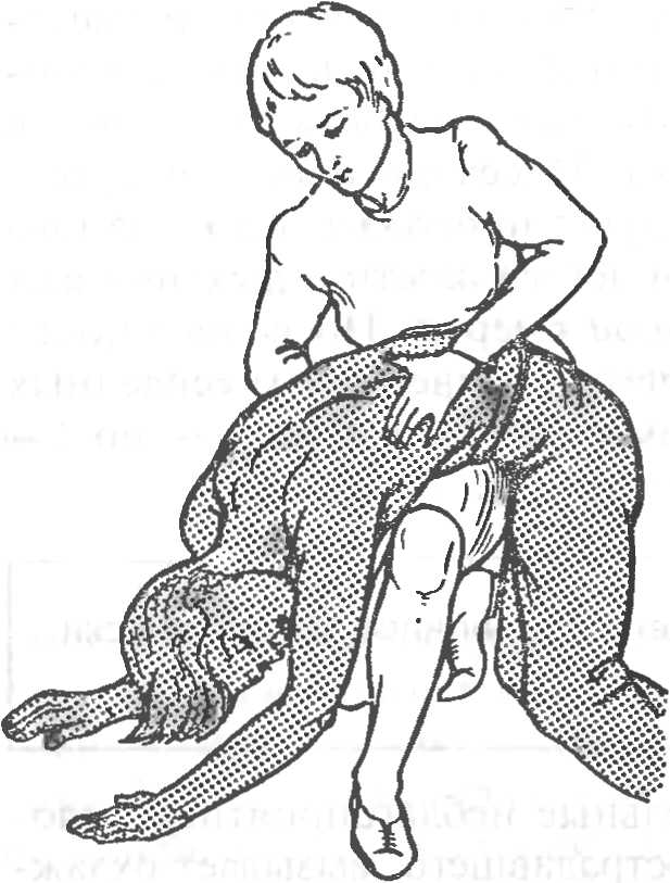 Извлекать утопающего из воды необходимо осторожно. Подплывать к нему следует сзади, избегая захвата утопающим. Схватив за волосы или под мышки, нужно перевернуть утопающего вверх лицом и плыть к берегу. Первую помощь начинают после извлечения его из воды. Пострадавшего кладут животом на согнутое колено реаниматора так, чтобы голова была ниже грудной клетки, удаляют из полости рта и глотки воду, рвотные массы, водоросли (рис. 60). Затем, сдавливая энергичными движениями грудную клетку, удаляют воду из трахеи и бронхов. У пострадавшего паралич дыхательного центра наступает через 4—5 мин, сердечная деятельность сохраняется до 15 мин. После освобождения воздухоносных путей от воды пострадавшего укладывают на ровную поверхность и приступают к искусственному дыханию с ритмом 16—20 в минуту. При отсутствии сердечной деятельности одновременно проводят наружный массаж сердца.