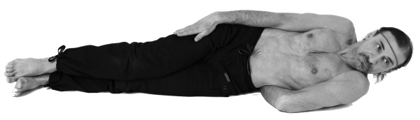 Сохраняйте эту позу до 30 секунд, потом плавно перевернитесь на другой бок и поменяйте руки местами.