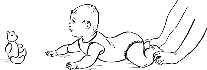 Рис. 229. Игрушка на расстоянии побуждает ребенка к ползанию