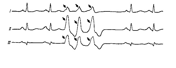 Жалобы: на перебои в работе сердца, периодически сильные удары сердца с чувством остановки (замирания) сердца. При аускультации выслушивается преждевременное сокращение сердца, при котором I тон усилен с последующей удлиненной (компенсаторной) паузой. При этом пульсовая волна малая, иногда пальпаторно даже не определяется.