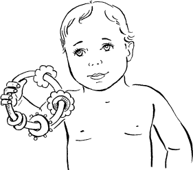 Кладите пищащие игрушки на грудь ребенка, чтобы он мог обхватить их обеими руками. При этом их звук не должен быть слишком резким.