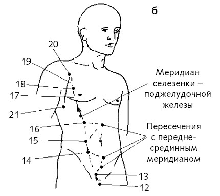 Рис. 44, а, б. Меридиан селезенки и поджелудочной железы