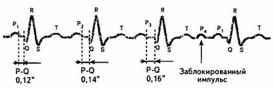 В ряде случаев атриовентрикулярная проводимость как бы постепенно ухудшается с каждым последующим проведением очередного синусового импульса, достигая в определенный момент такого ухудшения, что проведение импульса становится невозможным.