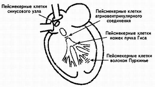 Рис. 62. Пейсмекерные клетки проводящей системы сердца