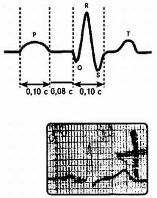 Электрокардиограф, получая электрические импульсы с поверхности тела пациента через этот регистрирующий электрод, преобразует их в графическую кривую линию на миллиметровой ленте. Эта кривая линия и есть электрокардиограмма.