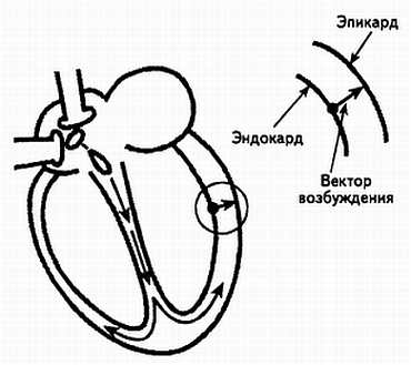 Рис. 15. Графическое изображение пути импульса от эндокарда к эпикарду