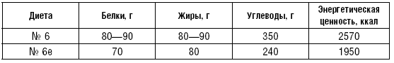 • диета № 6е с нормальной энергетической ценностью. Сравнительная характеристика этих диет приведена в табл. 109.