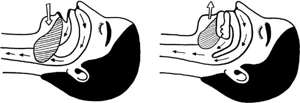По ночам мы обычно дышим носом. Но если носовые ходы сужены или нос полностью забит, то храпящий непроизвольно открывает рот, чтобы открыть воздуху обходной путь через «большие ворота». Это облегчает доступ воздуха, но в то же время означает, что нос перестает действовать как фильтр и воздухонагреватель. Поэтому те, кто дышит ртом, подвергаются более высокому риску инфекций. Слизистые рта высыхают, у многих храпунов развивается пародонтоз и запах изо рта. К тому же храп чисто механически раздражает слизистые оболочки, они отекают, и потому храпуны просыпаются ночью от жажды, а по утрам у них болит горло. Замкнутый круг.